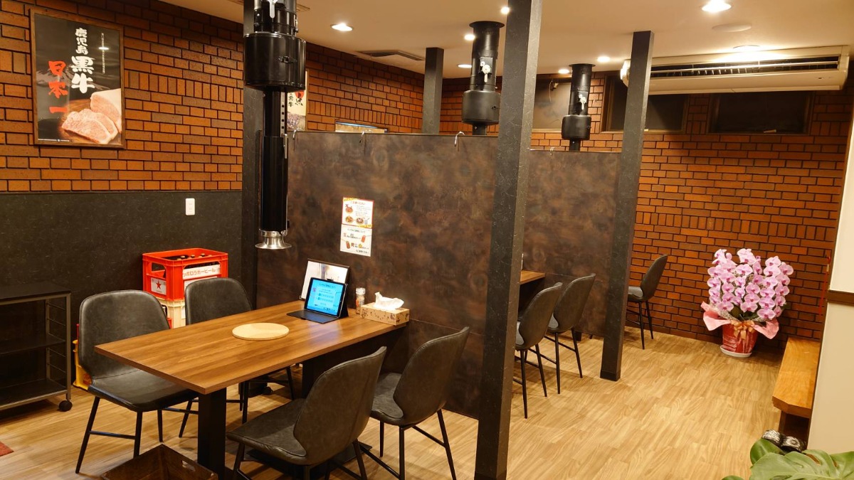 レンガの壁がある店内は、8名用の座敷と仕切りのあるテーブルがあり、家族連れやグループでの利用にもおすすめのです。もちろんおひとり様も大歓迎! 簡単にタッチパネルで注文できるところも魅力の一つです。