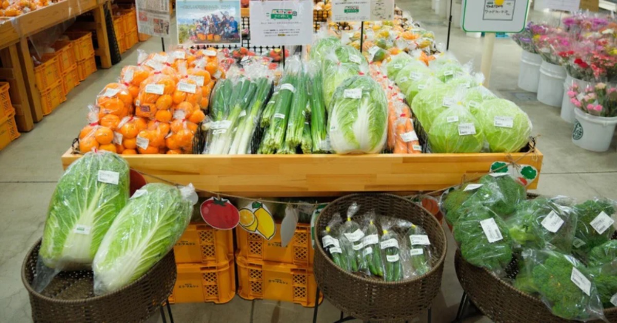 運ばれてきた農作物は新鮮なまま「やさいバス」専用の売り場に並べられ消費者の手に渡る。