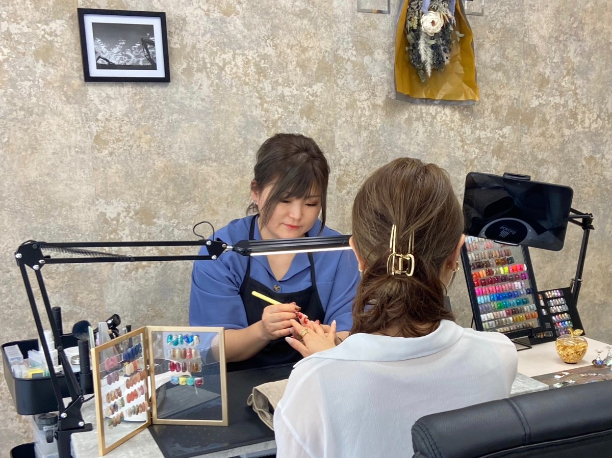 ショートネイルを得意とし、仕事や家事、育児で爪が伸ばせない人達も多く通っています。