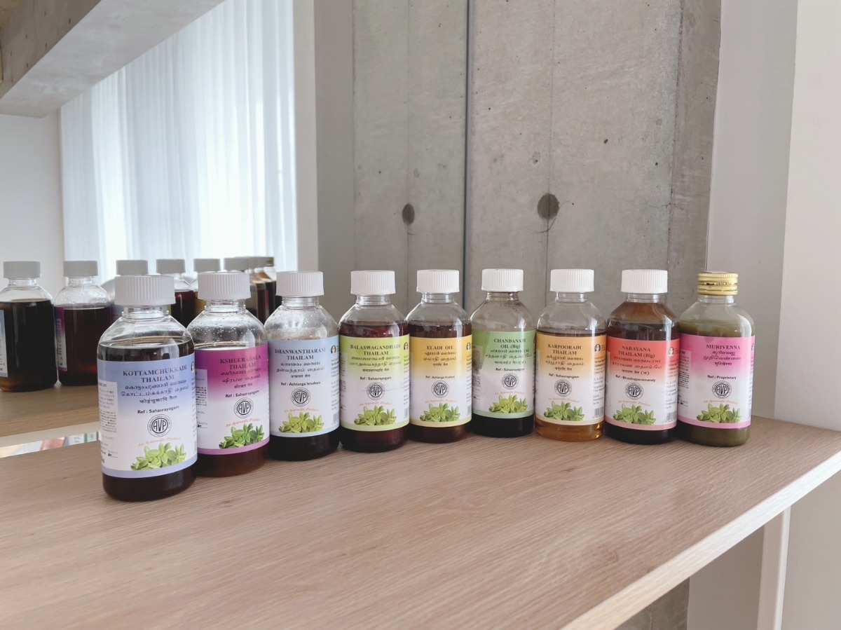 植物由来の薬草、オイル、マッサージ、ヨガ、瞑想、食事療法など健康を促進するいろいろな方法の中で、このサロンでは、マッサージにあたる「アビヤンガ」(オイルトリートメント)を提供。