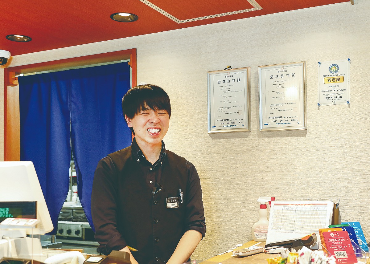 「店主の補佐業務のみならず、次期店主としてイレギュラー対応についても学んでいる最中です」と笑顔で語る。