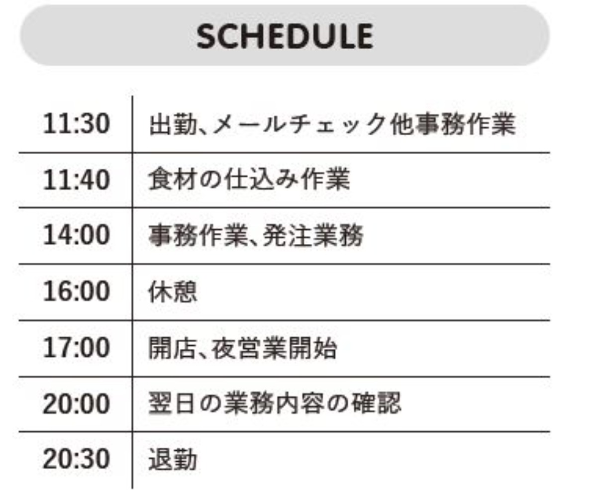 飲食業は過酷な印象もありますが、安定した企業なので休日もしっかりあり、かなり働きやすい環境ですね。