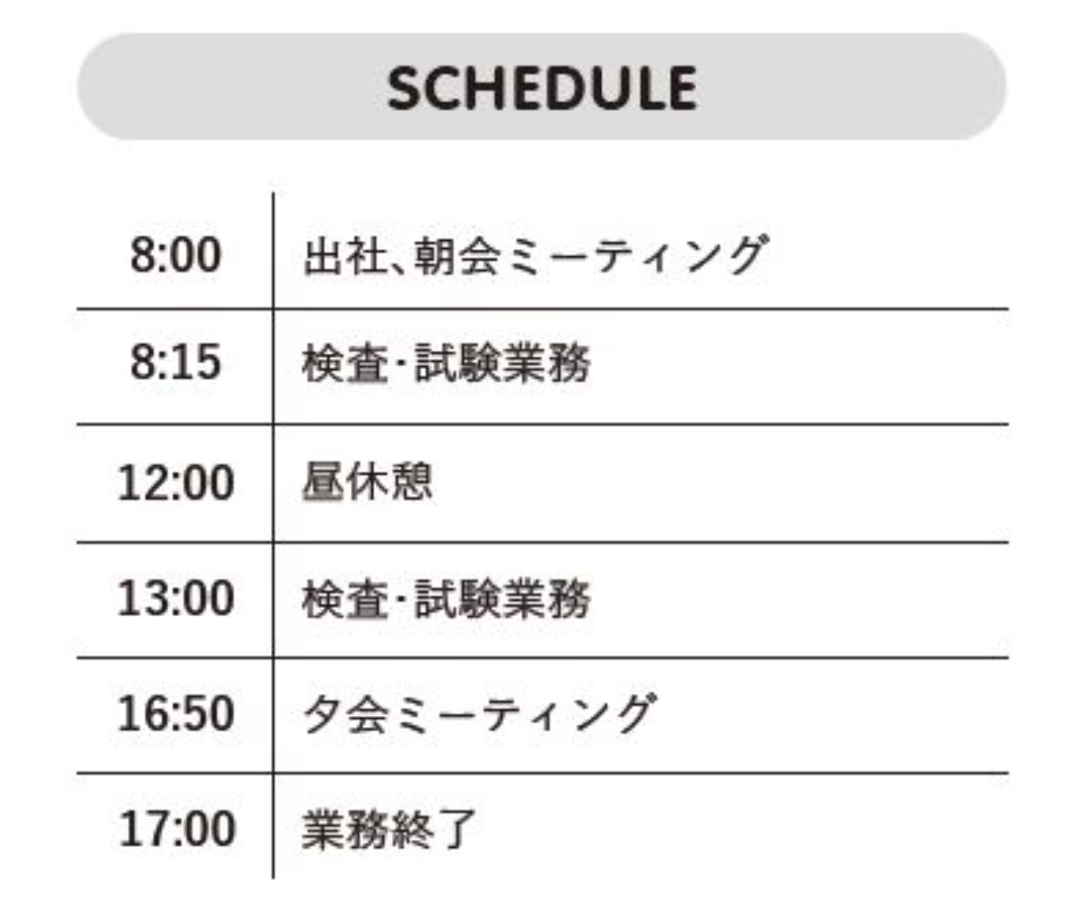 周辺の工業系企業は二交代、三交代勤務も多い中、日勤で働けます。