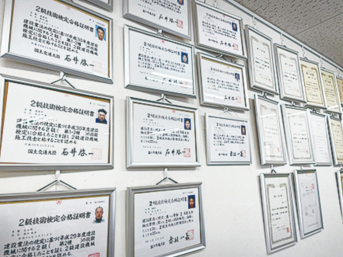 各種資格や重機操縦などの免許の取得支援が充実しています。