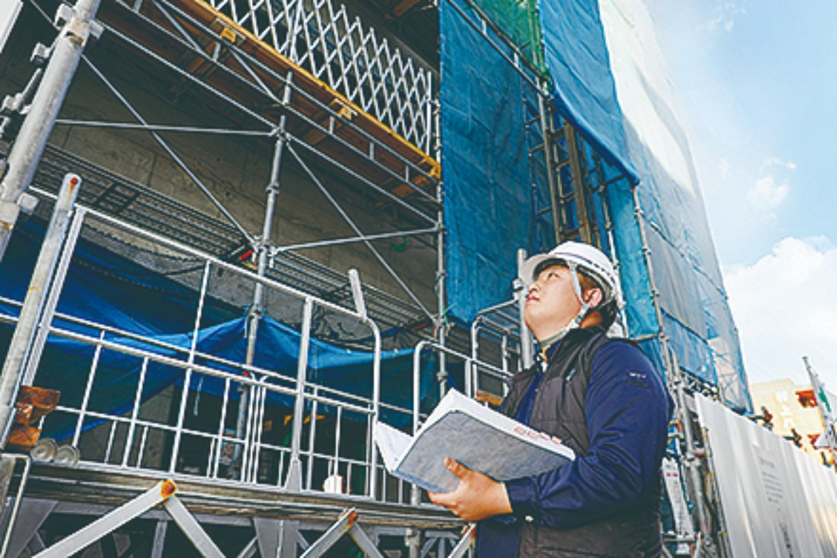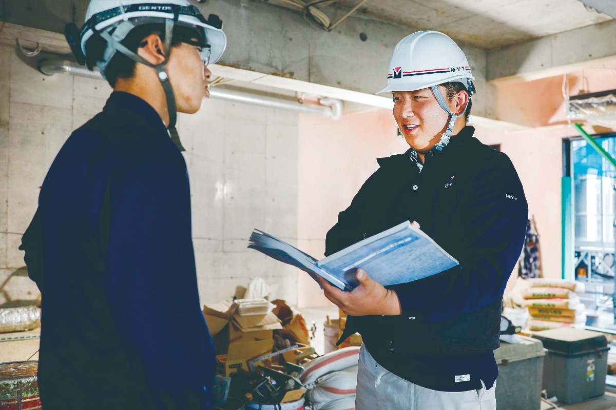 入社8年目の吉田さんは、現在、来春竣工予定の大学生向けマンションの建築工事で現場監督を務めている。少人数で現場を最初から最後まで担当するスタイルは、責任がある分やりがいも大きい。