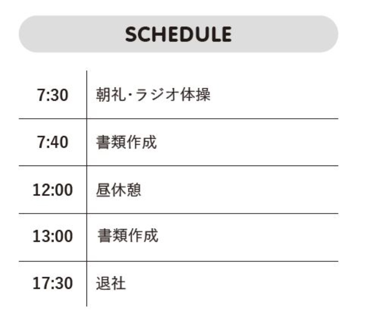 ●休日休暇/年間休日100日、ほぼ週休2日制(1カ月単位の変形労働時間制を採用、休日は会社カレンダーによる)