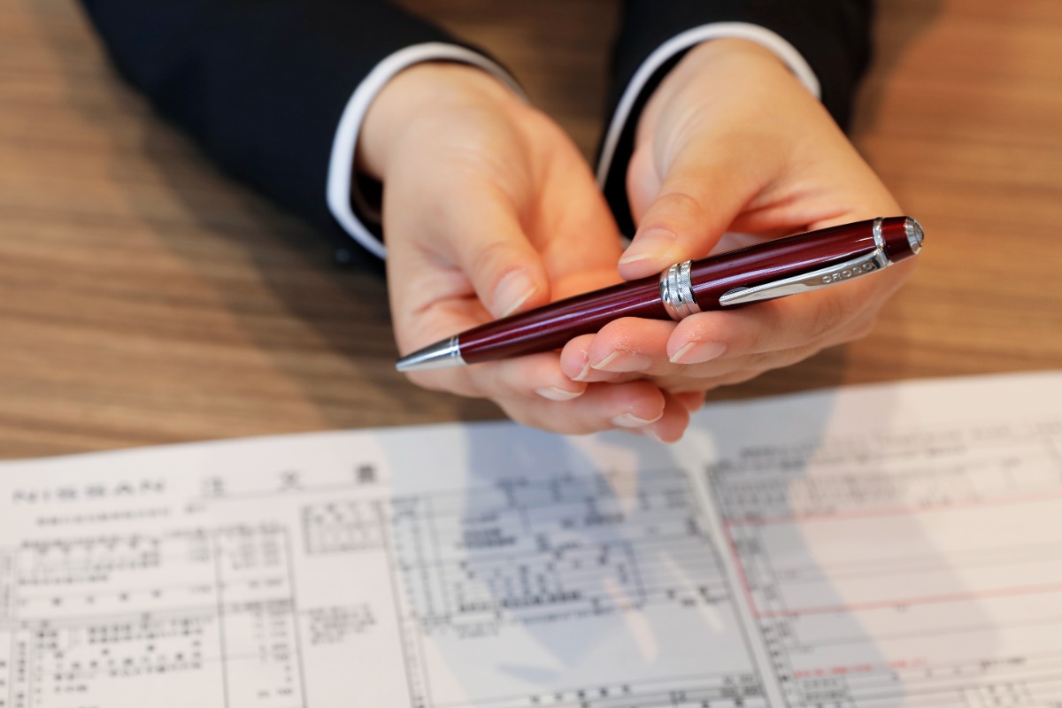 お客様に注文書をいただくとき専用のボールペンを用意しています。