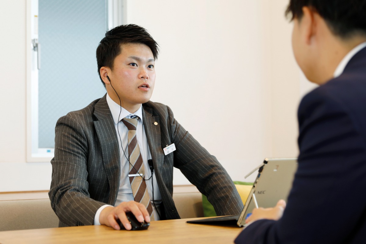 シフト制の勤務形態の中でも、担当する顧客と会う機会はなるべく逃さないよう気を遣っているそう。