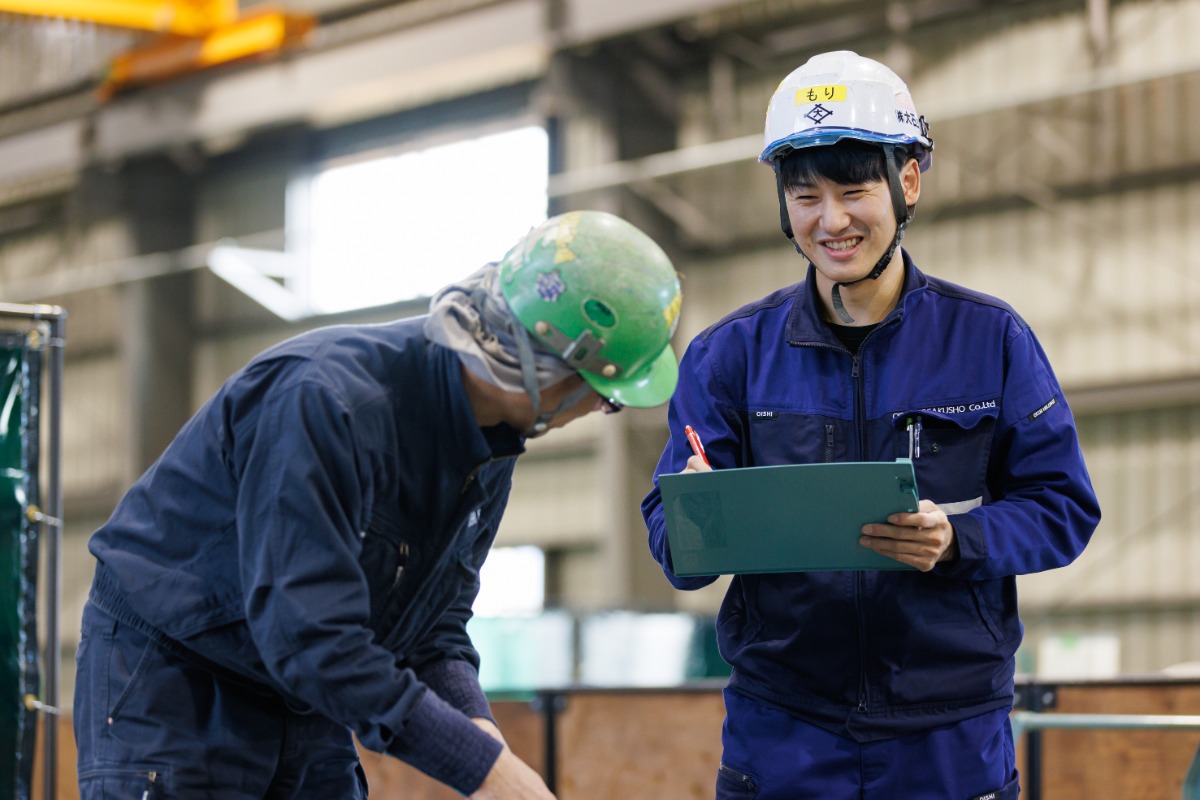 先輩現場監督のサポートやOJTで業務を学びながら、支援制度を使って資格を取得し着々と確実に成長してきた森さん。