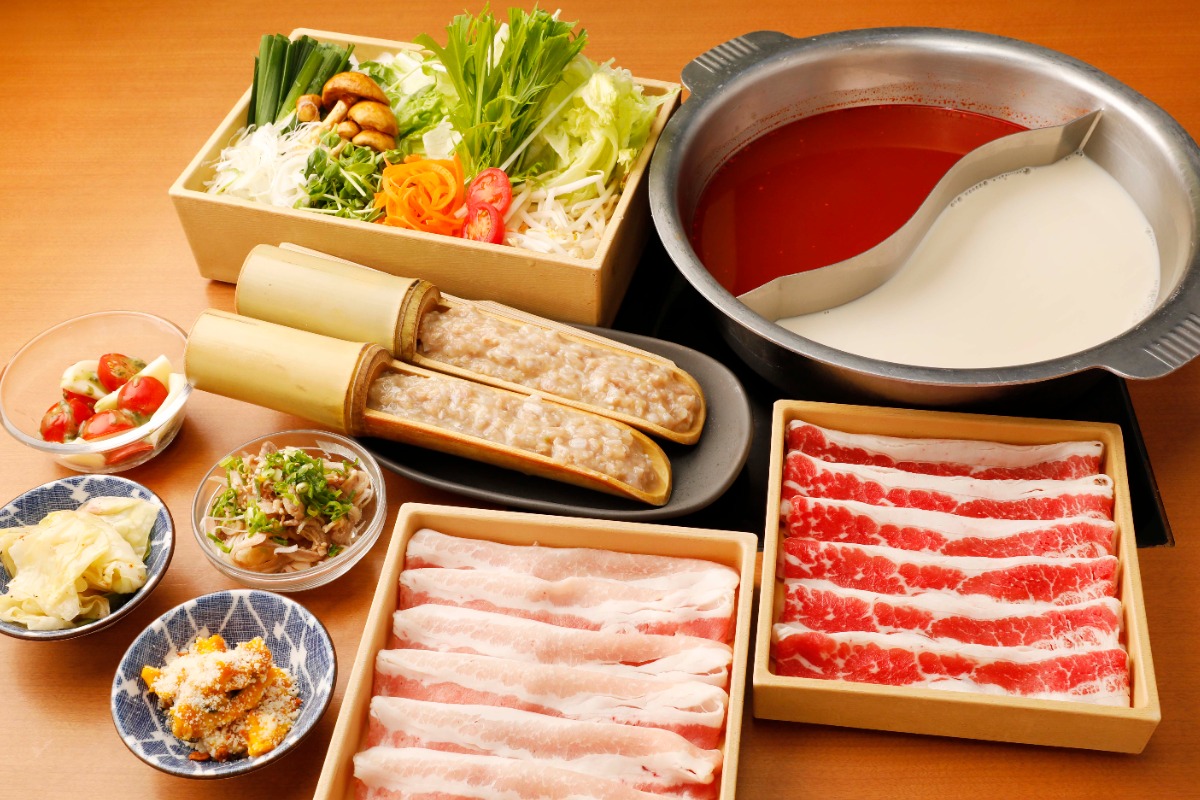 「温野菜」では、肉や国産野菜、逸品など60品以上が食べ放題!ダシは、人気の「三代目極みだし」をはじめ、「すき焼きだし」や「こく旨にんにくだし」など全7種から2種選べるので、好みが分かれても安心です。