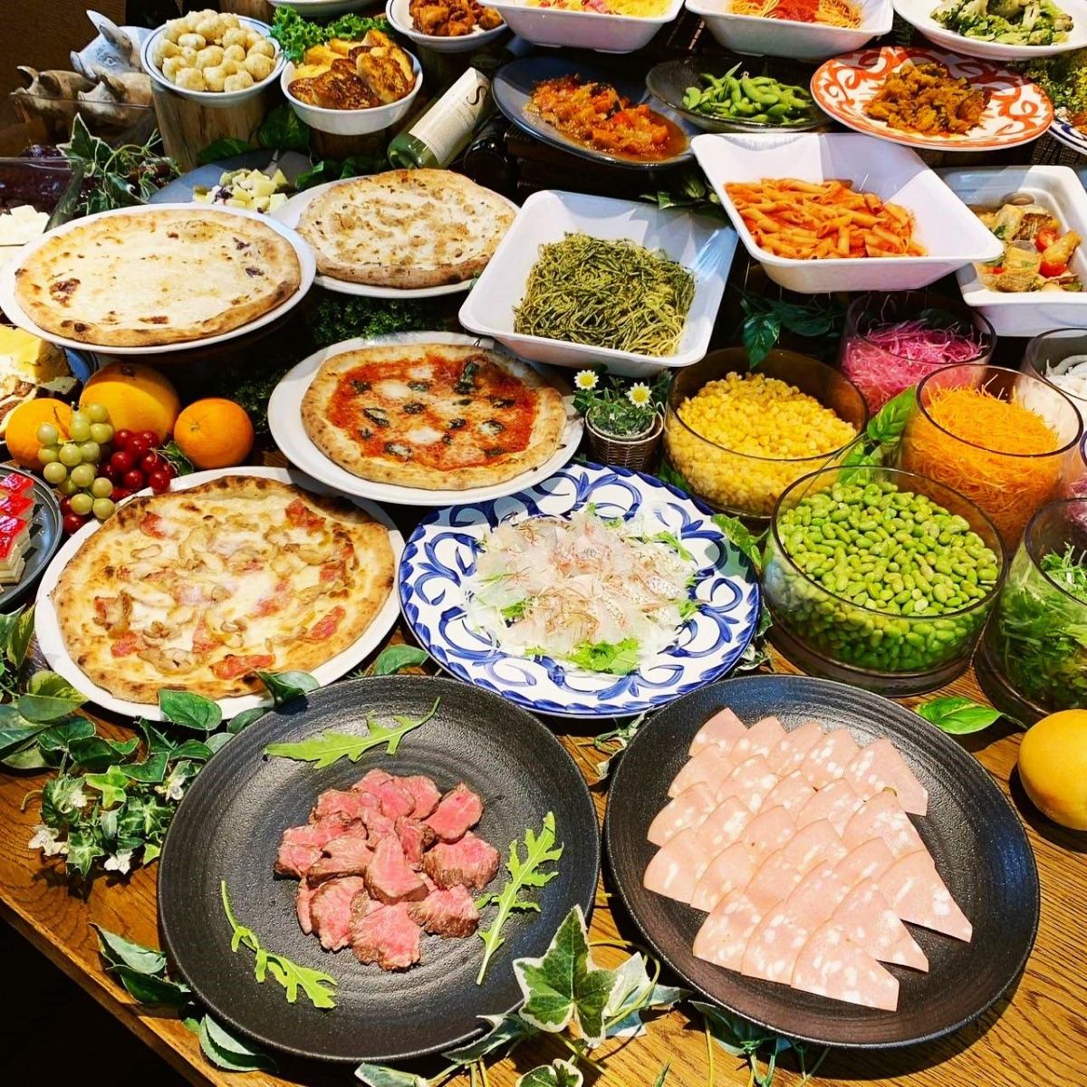 サラダやドルチェなどはフリーブッフェで楽しめ、パスタ・ピッツァは好きなものを選んで一番美味しい状態でテーブルまで運んでくれます。通常5,000円にプラス1,000円で「豪華! 肉3種盛り! 」をセットにもできる豪華プランもありますよ。