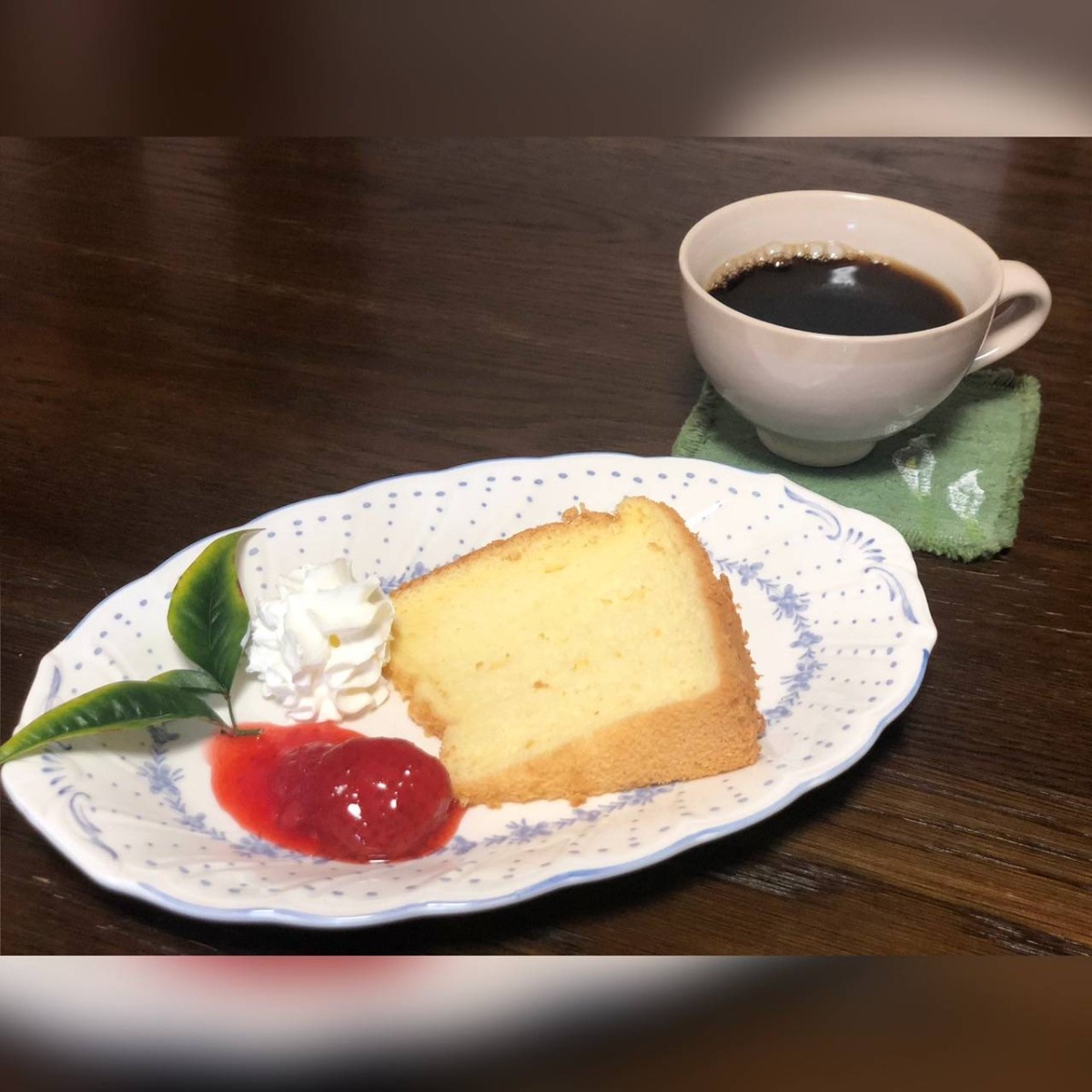 店主の娘さんが作るシフォンケーキ(350円)も人気の一品。ふわっとした口溶けで、甘さ控えめ。食後のコーヒーにもぴったりです。