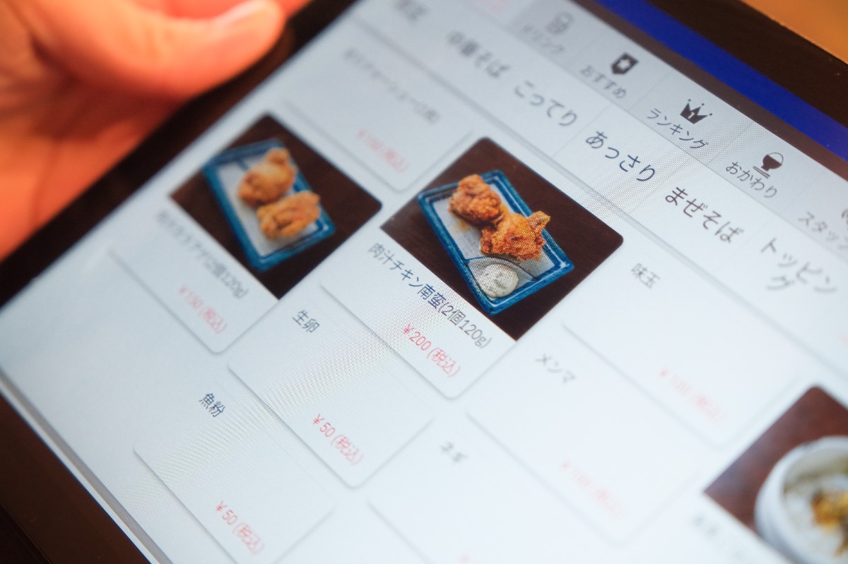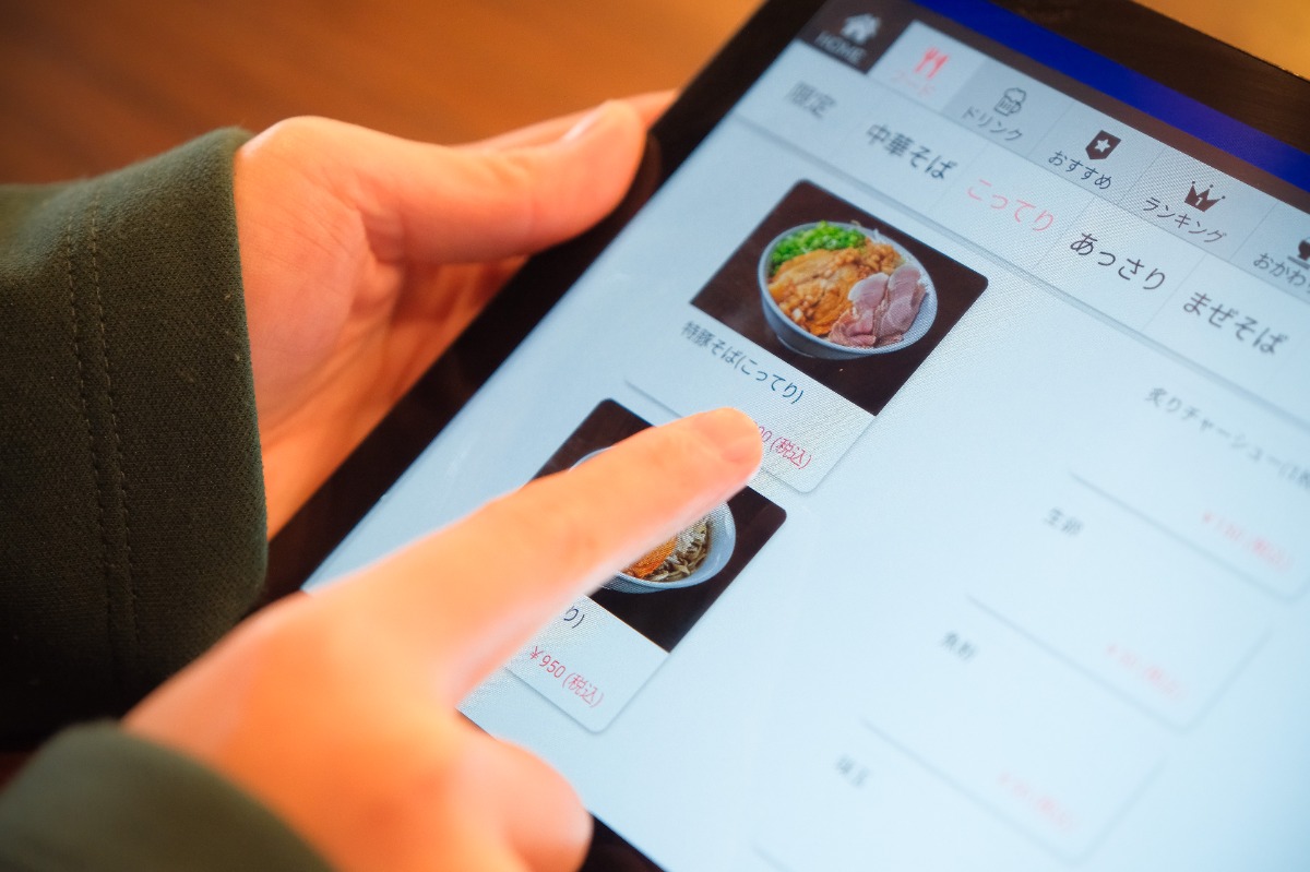 各席の卓上にはタブレットがあり、タッチパネルで注文できます。