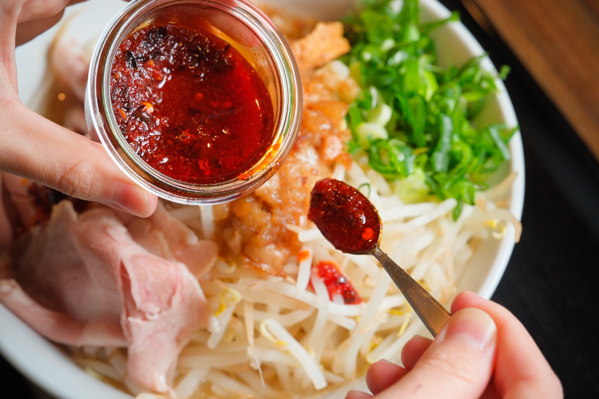 味変したいときは、自家製ラー油がおすすめ。少量でもスパイスが効いています。