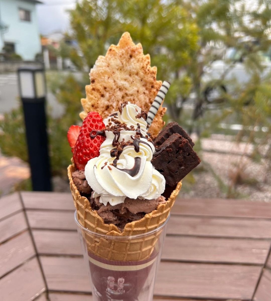 「ブラウニーのチョコレート ワッフルコーンパフェ」(825円)