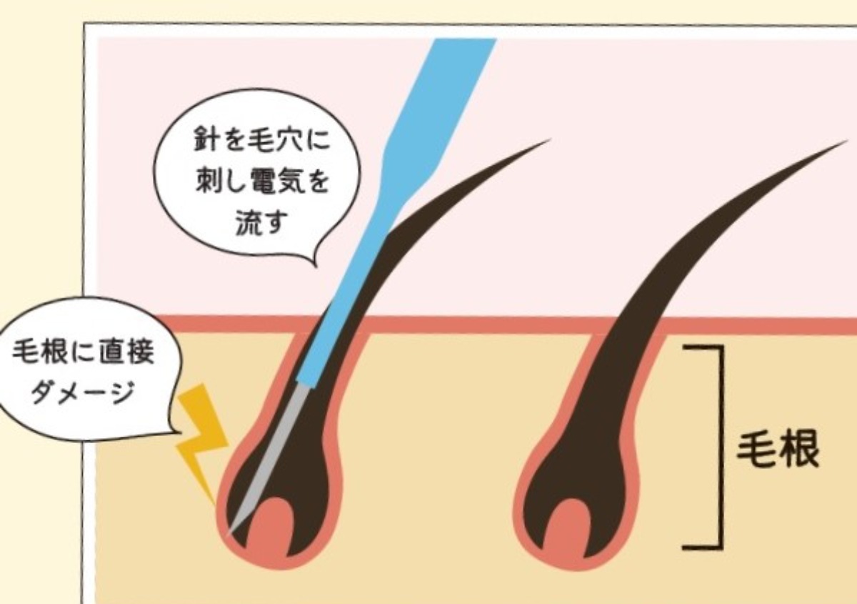 レーザー脱毛を継続していると、生き残った毛が太く濃くなってしまう硬毛化が起こることがあります。そうなると治療が難しいのですが、針脱毛であれば抜くことができます。