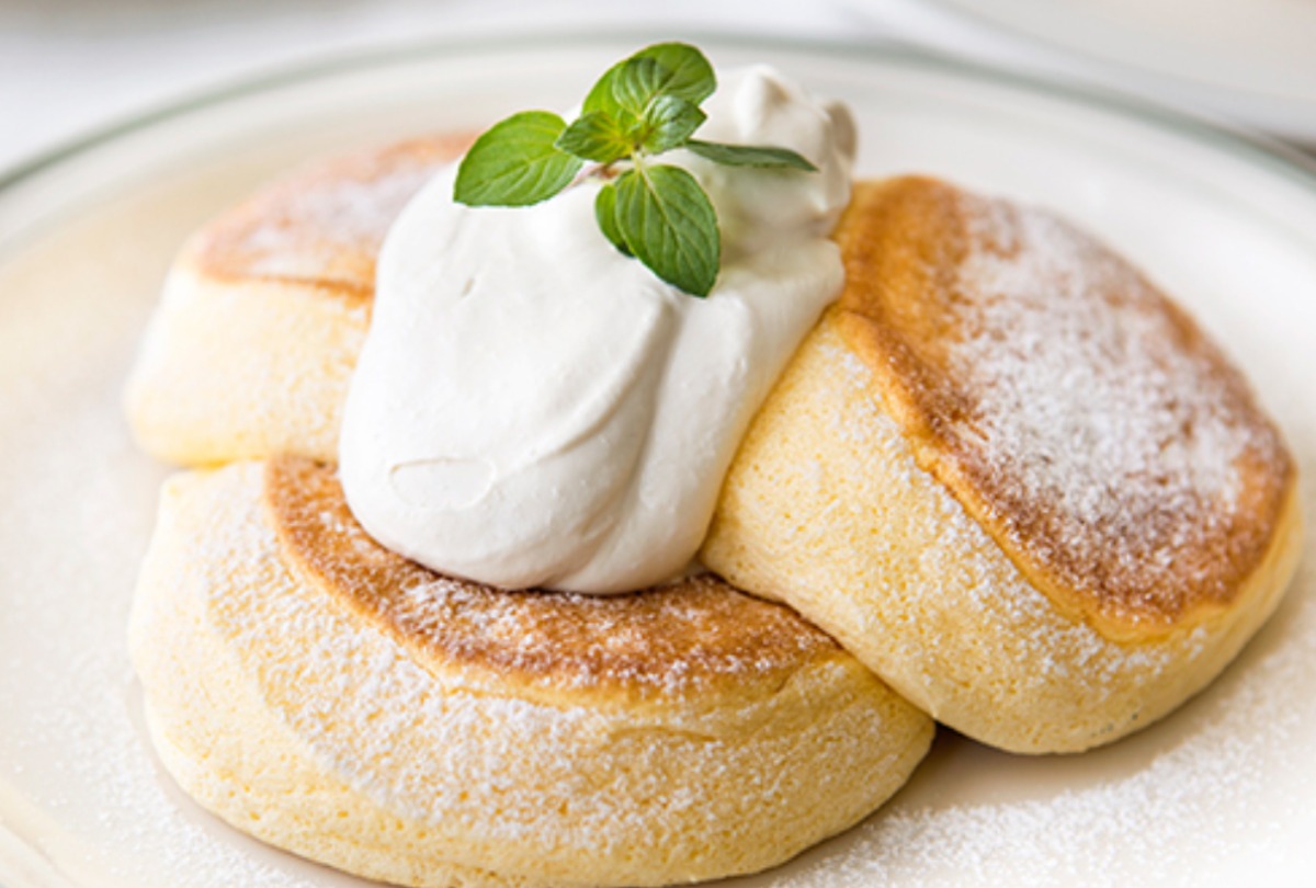 その名の通り、分厚くてふわっふわの「ふわとろパンケーキ」の提供は13:30から。「プレーン」「あずき」「ベリー」の3種類がある。すぐにしぼまないよう、試行錯誤を重ねて作っている。ドリンクをセットで注文すると、ドリンクが200円引きに。