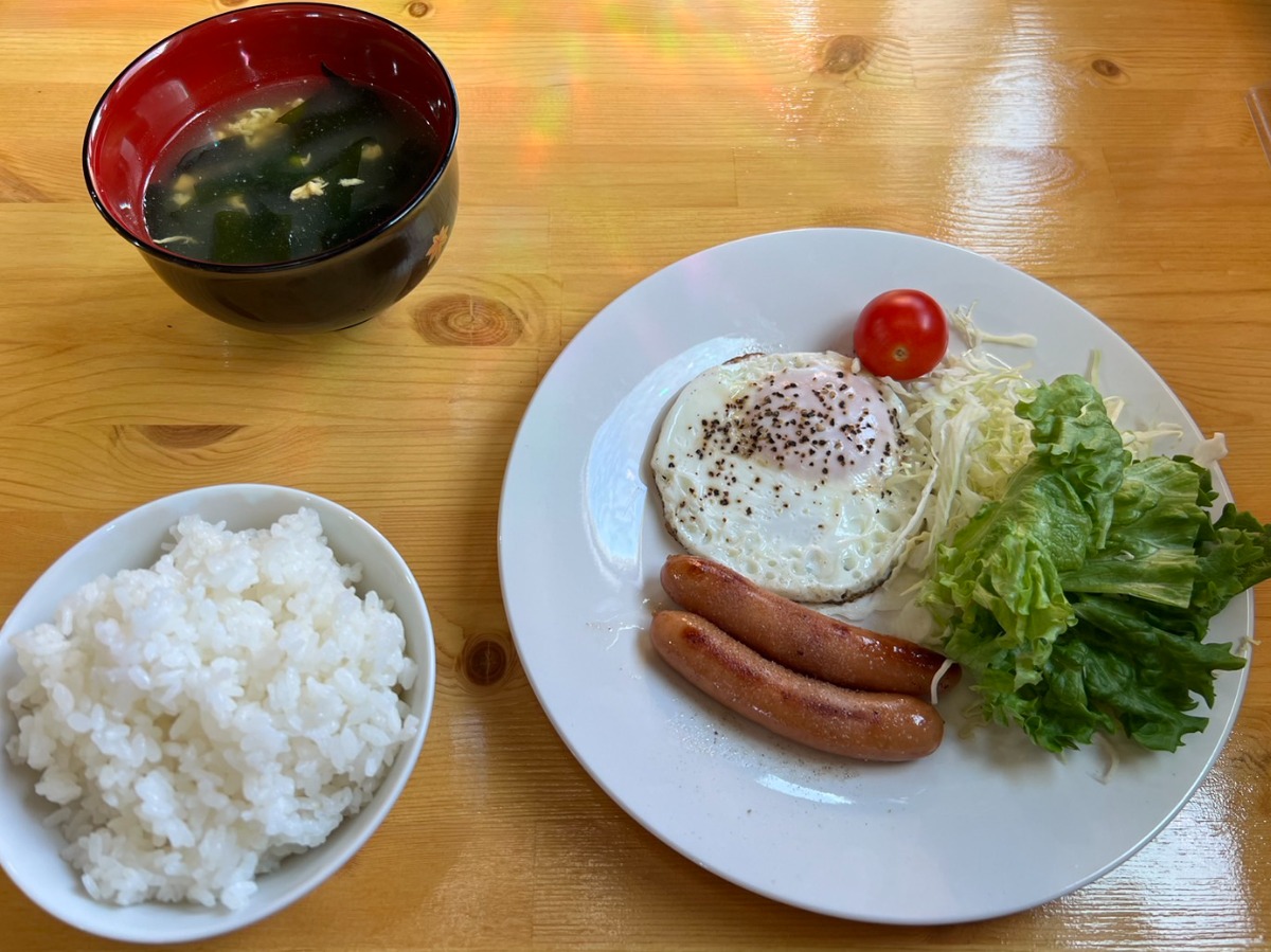 Cセット:ごはん・目玉焼き・ウインナー・サラダ・スープ