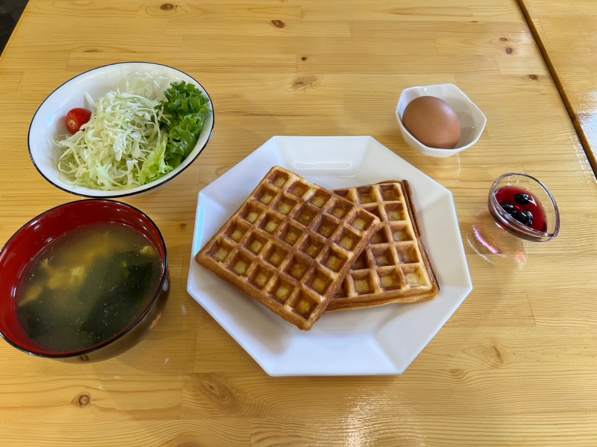 Bセット:ワッフル・ゆで卵・サラダ・スープ、