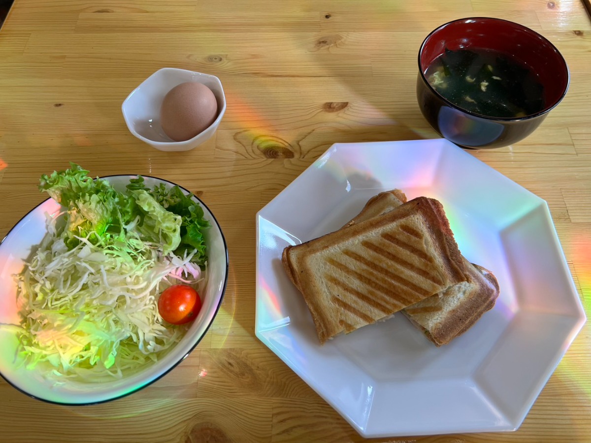 Aセット:ホットサンド・ゆで卵・サラダ・スープ