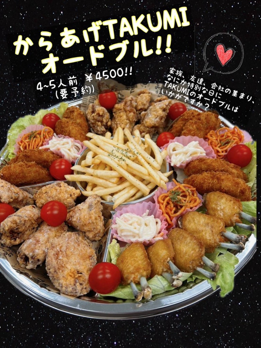 「からあげ工房 匠」は3日前の予約でオードブルもできます。
