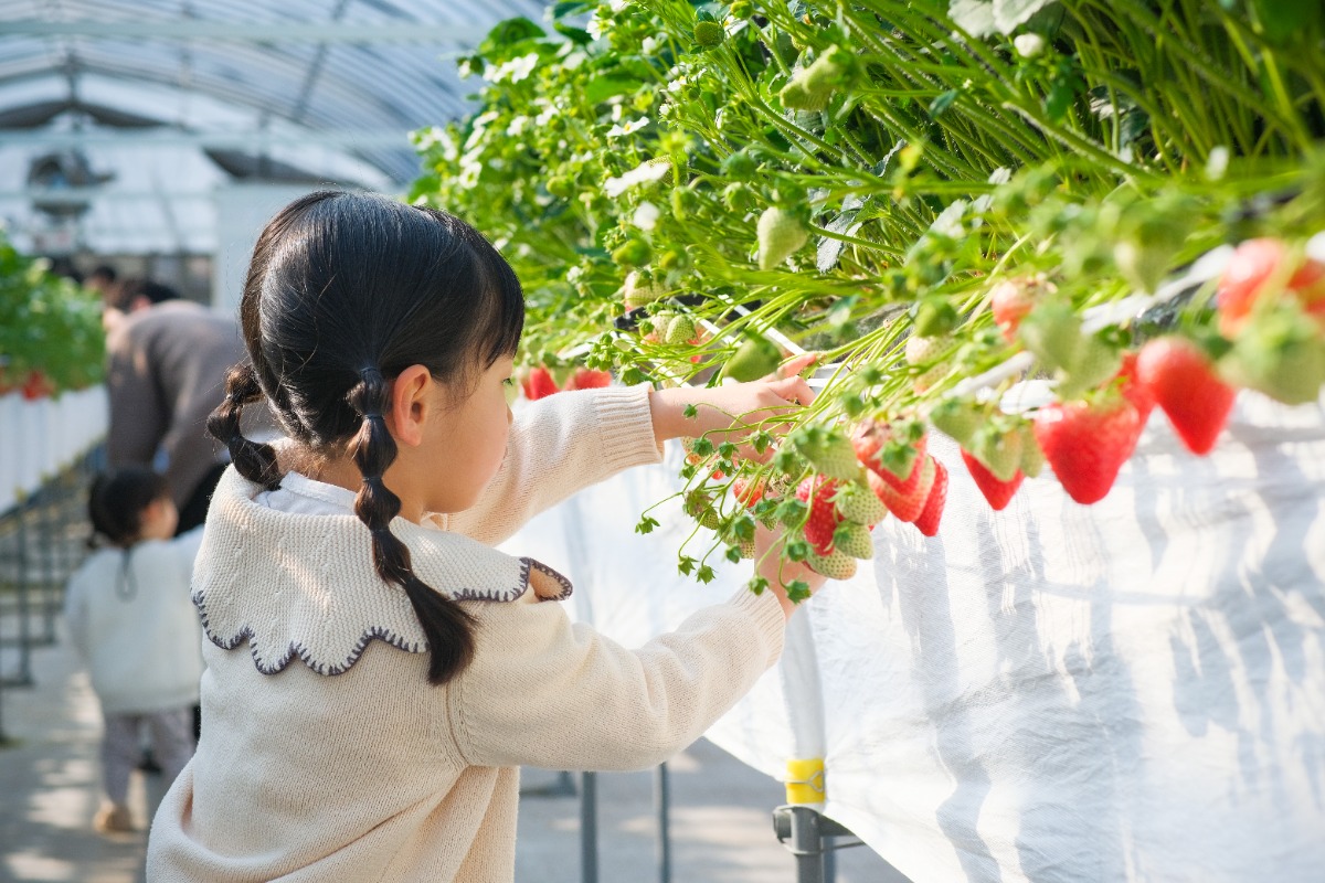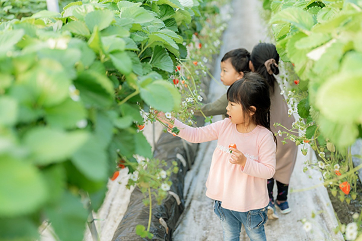 楽しさいっぱいの農園で、甘い幸せが詰まったいちごを食べてお腹も心も満たされよう。