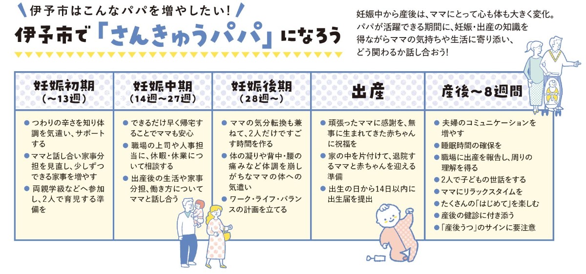 豊かな自然と温かな人…心安らぐ時間が流れる伊予市では、国が進める「さんきゅうパパプロジェクト」に合わせて、パパの積極的な育児参加を推進中。
