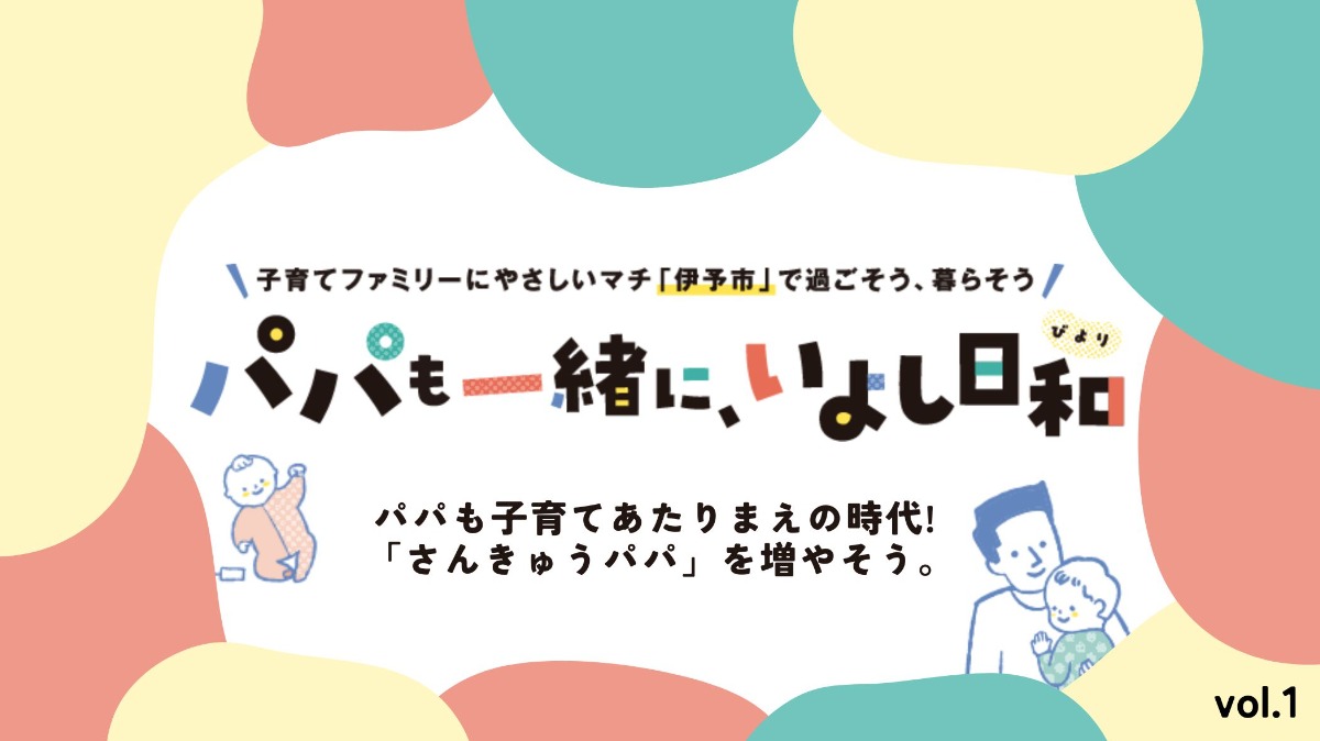 伊予市では、パパの子育て参加に役立ついろいろな情報をお届けするテレビ番組『パパも一緒に、いよし日和』を南海放送テレビで毎週土曜夜放送中です。
