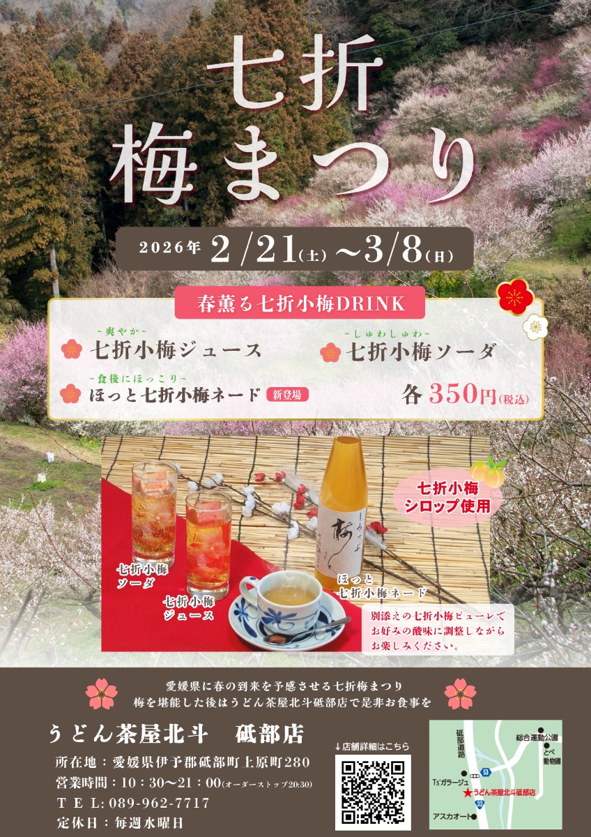 【うどん茶屋北斗 砥部店限定】「七折梅まつり」実施中!