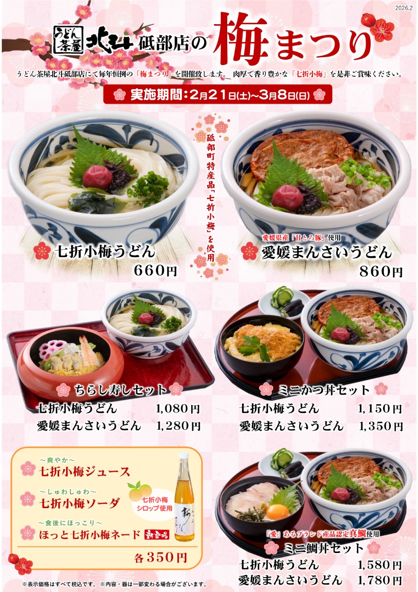 うどん茶屋北斗 砥部店「梅まつり」メニュー