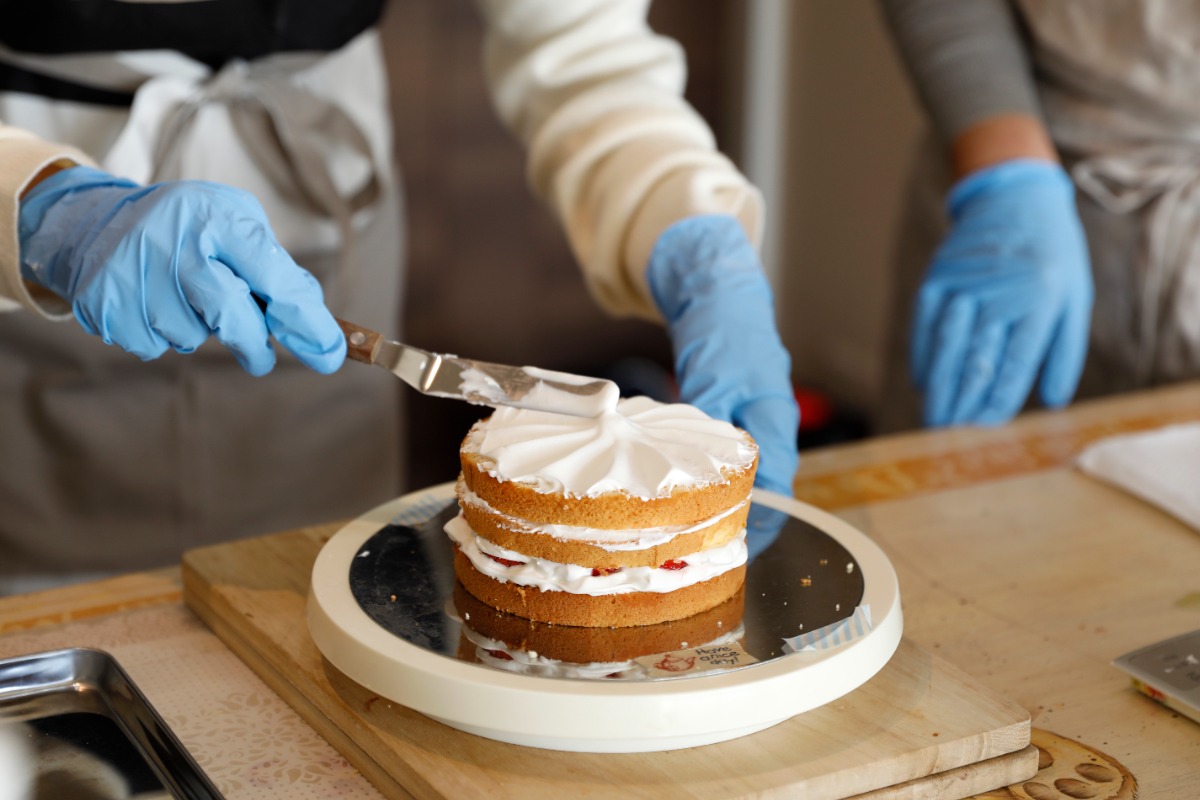 クリームの塗り方や絞り方を練習して、いよいよデコレーションタイム。先生の的確なアドバイスで、お菓子作り初心者でも素敵に仕上がって嬉しいですね。