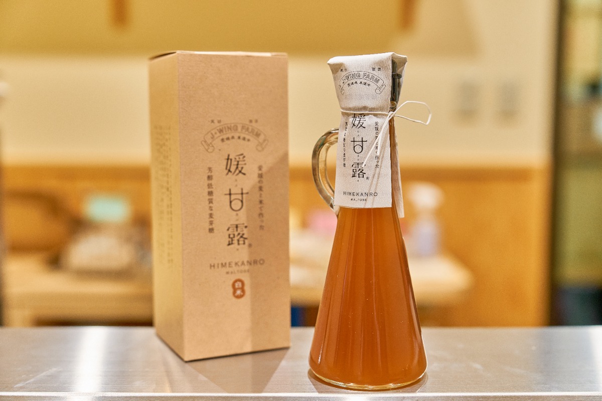 東温市ののどかな田園風景に佇む小さなカフェ「媛甘露庵」。自社栽培のもち麦を使い、昔ながらの製法で三日三晩かけてできあがる、麦芽糖「媛甘露」を使ったスイーツが楽しめます。