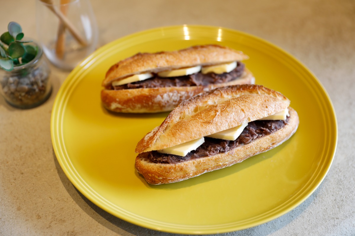 ハード系の生地に北海道産の粒あん、カットした有塩バターを贅沢に3枚サンド。