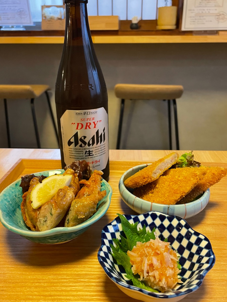おかずをもっと楽しみたい方には「選べる副菜」(1皿220円~500円)の追加がおすすめです。ポテトサラダやあじの南蛮漬けなど、おかず系からおつまみ系まで副菜のメニューはその日によって変わるので、何があるかは店主に確認してくださいね。家庭でのプラス1品として、テイクアウトもできますよ!