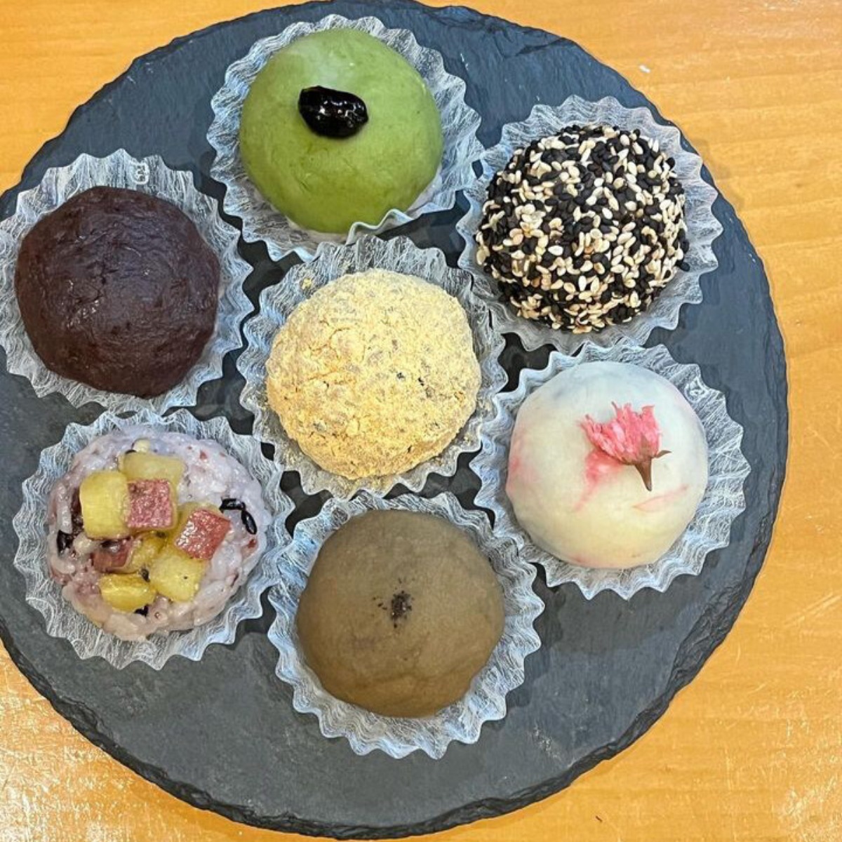 ネット予約やInstagramのDM、電話からも予約できる「7種のおはぎセット」。
