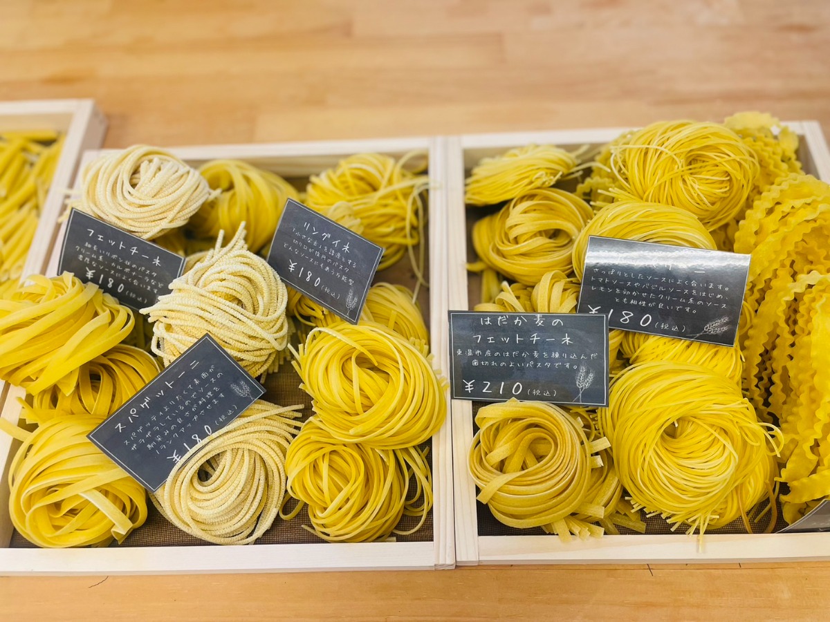 麺の太さや形状、小麦粉の種類が違う生パスタが約15種類ほど並んでいるので、いろいろと試してみるのも楽しいですよ。