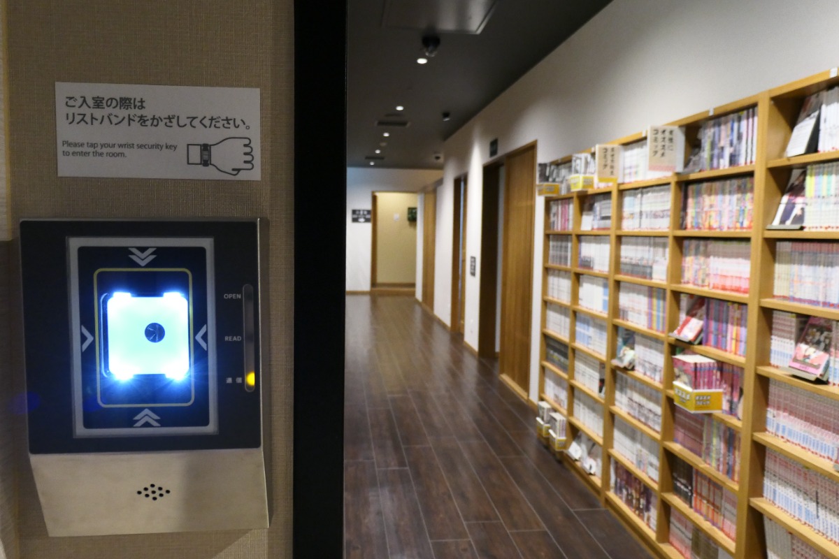 「喜助の宿」からは、リストバンドのQRコードをかざすと、館内で「喜助の蒸」「喜助の湯」を外に出ることなく移動可能です。
