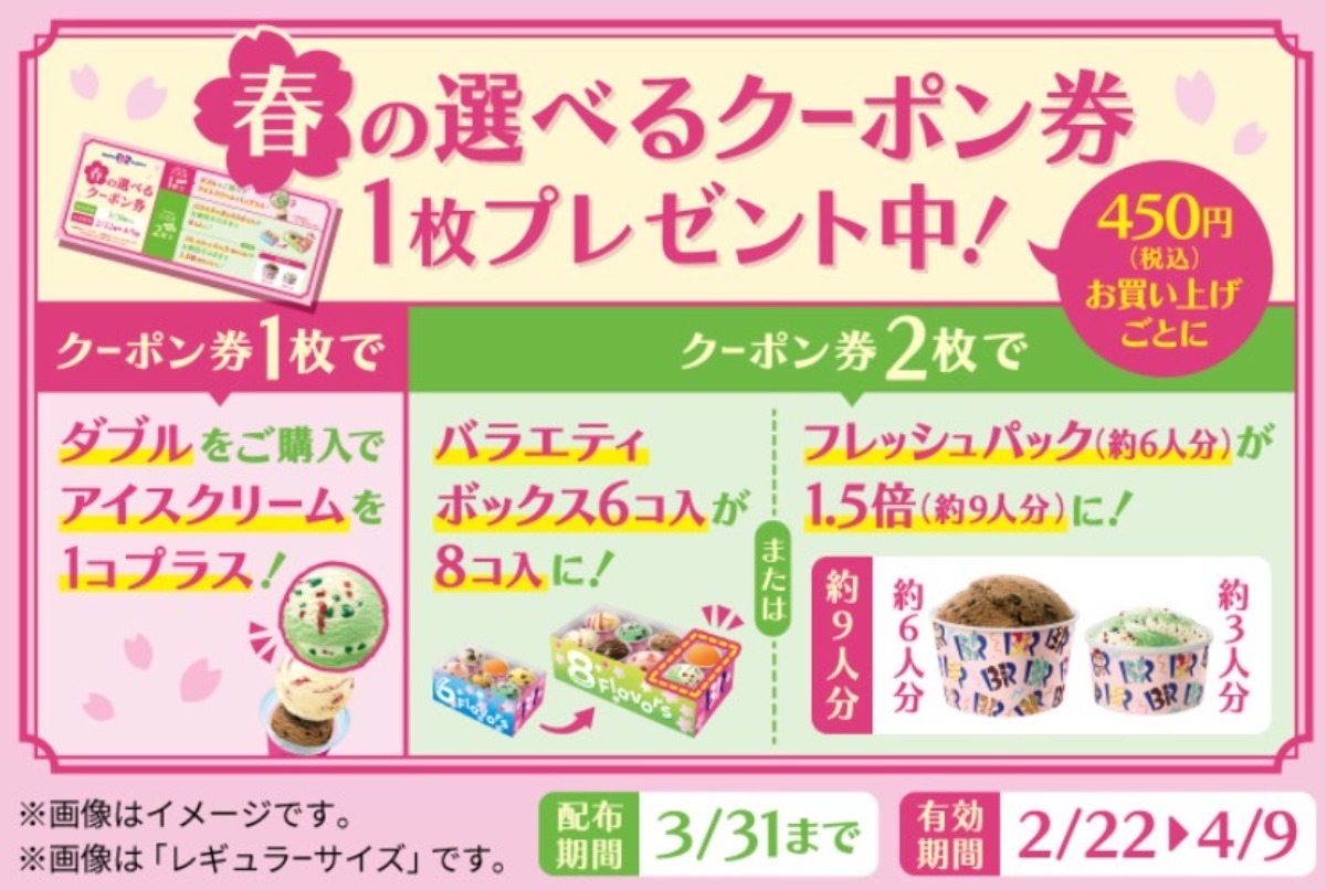現在450円ごとに、「春の選べるクーポン券」を配布中!