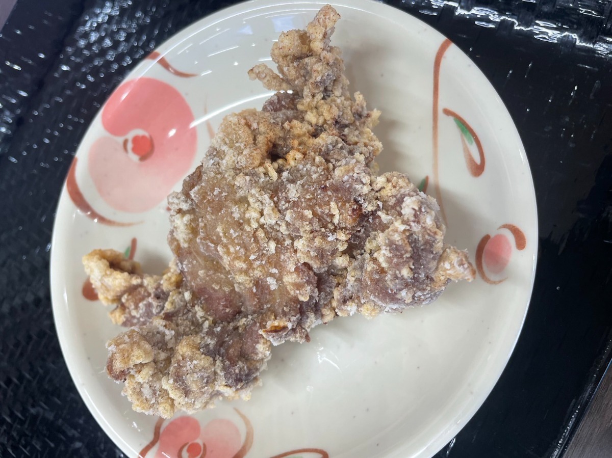 中でも1番人気はビッグなサイズの「唐揚げ」(250円)。秘伝のタレに一晩付けて味がしみ込んだジューシーな味わいの1品です。