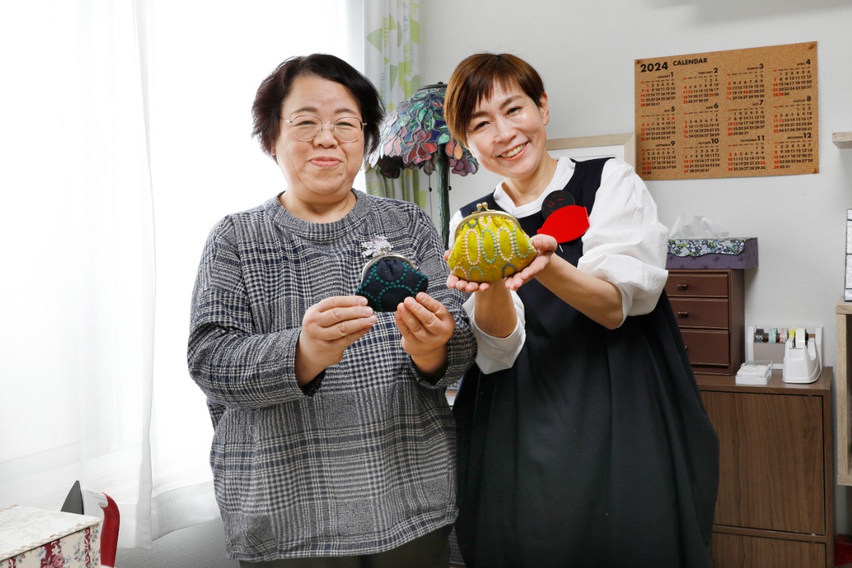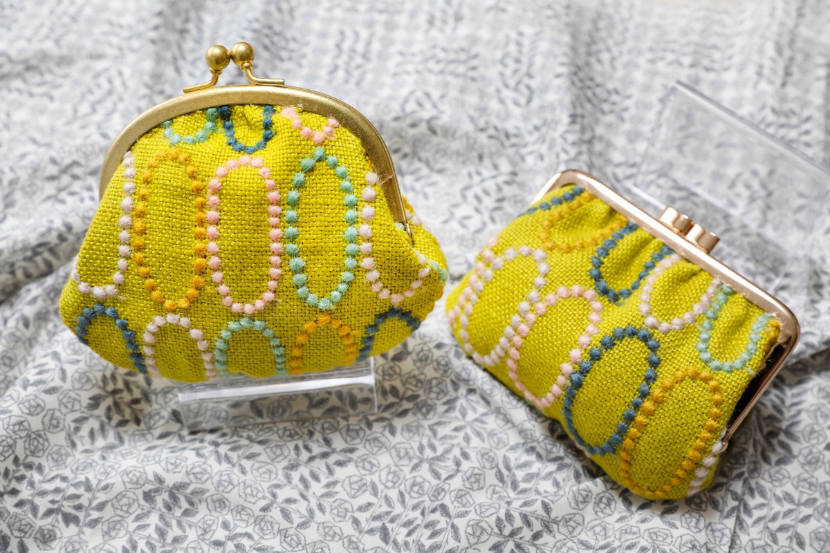 がま口の財布やバッグ、ポシェットなどを好みの生地で作成できるワークショップ。
