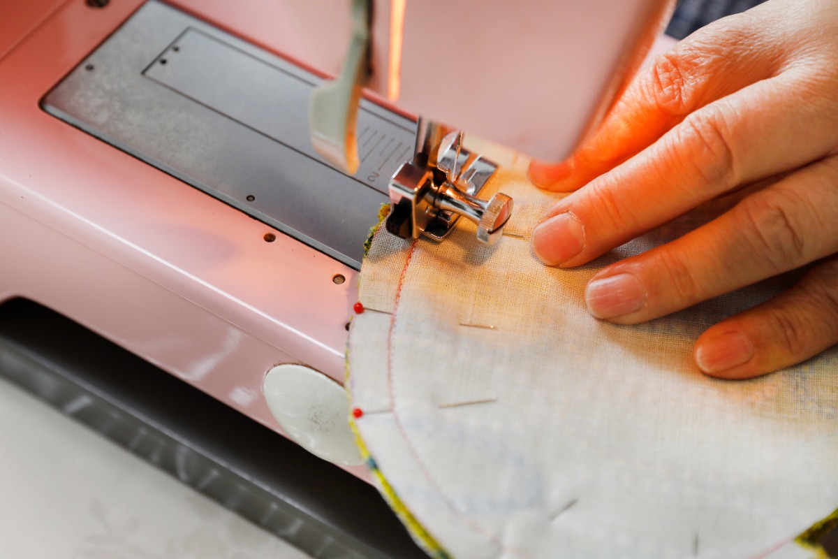 表地、裏地、芯地を型紙通りにカットしてミシンで縫い合わせます。