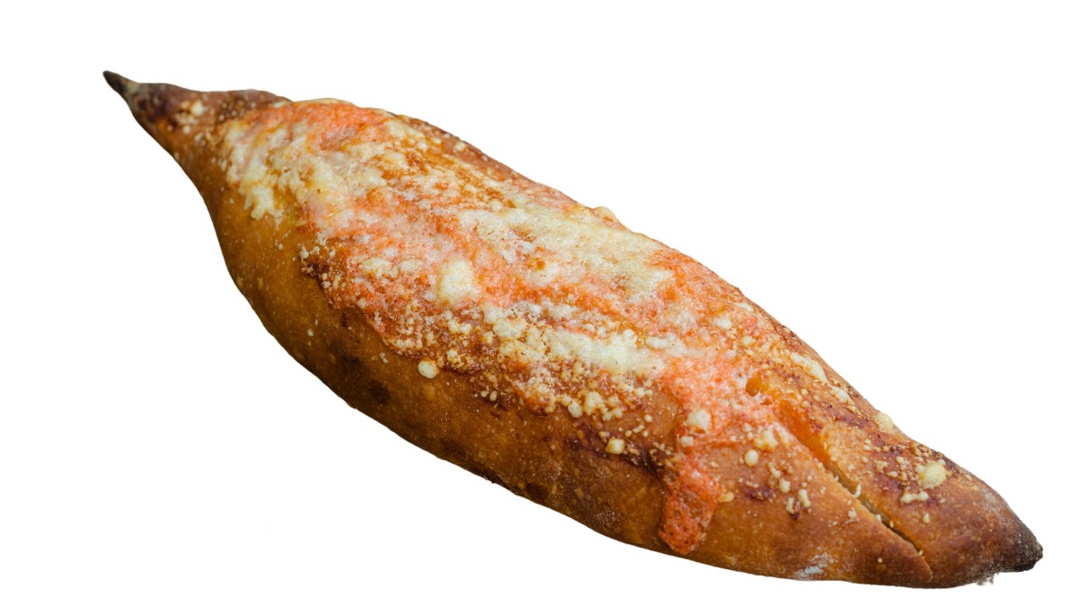 高加水で焼き上げた歯切れの良いフランス生地に、たっぷりの明太子バターを塗った自慢の逸品です。