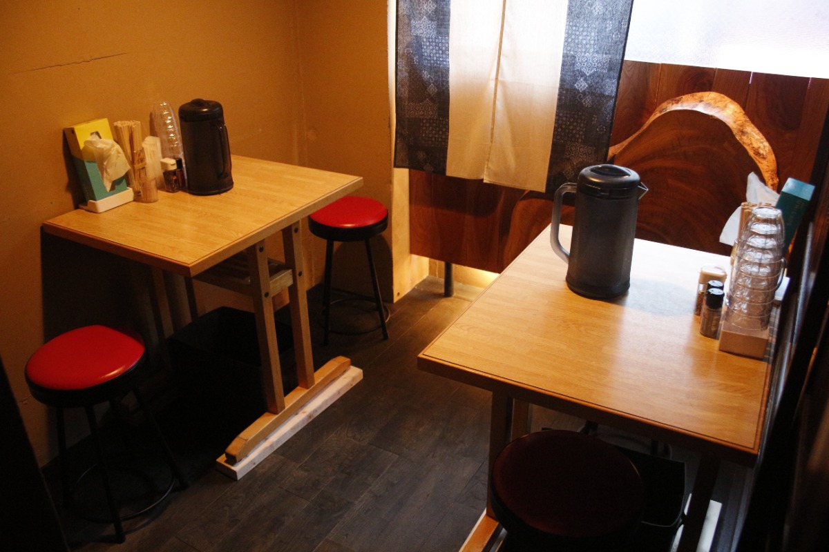 味玉やメンマ、白髪ネギやチャーシューといったトッピングは追加可能。替玉や大・中・小のサイズのご飯もあり。テーブル席があり、家族や友人との利用にもぴったり!
