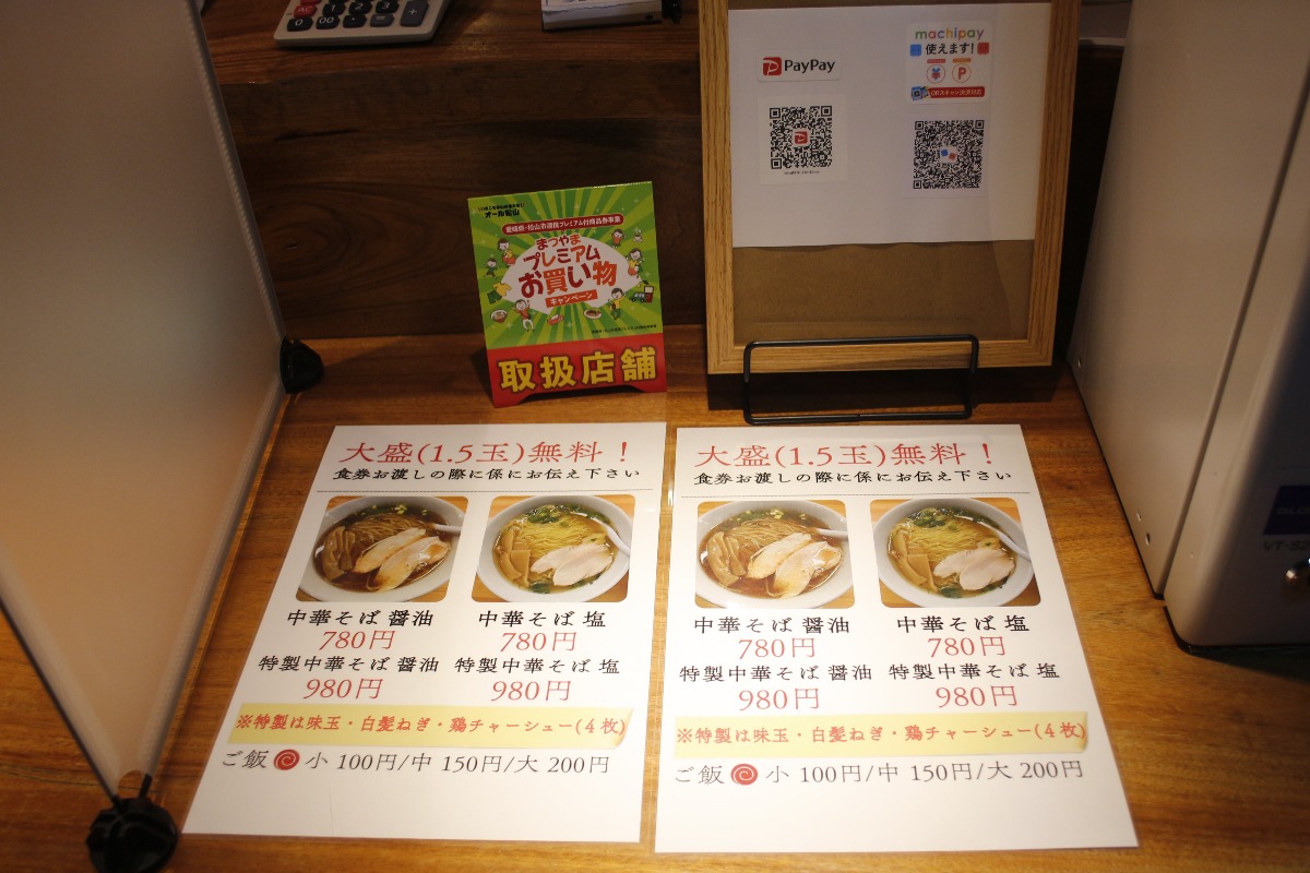 中華そば 醤油・塩(780円)、特製中華そば 醤油・塩(980円)
