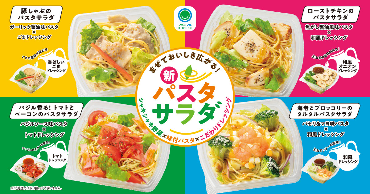 シャキシャキ野菜、あらかじめオイルやソースで味付けしたパスタ、こだわりドレッシングの組み合わせをお楽しみください。