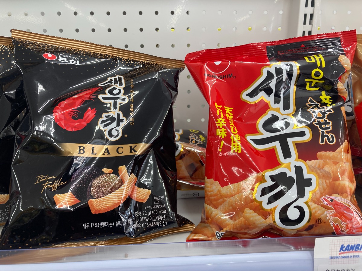 「BLACK」と辛口の2種類あり、国民的ベストセラーのえび風味のお菓子。
