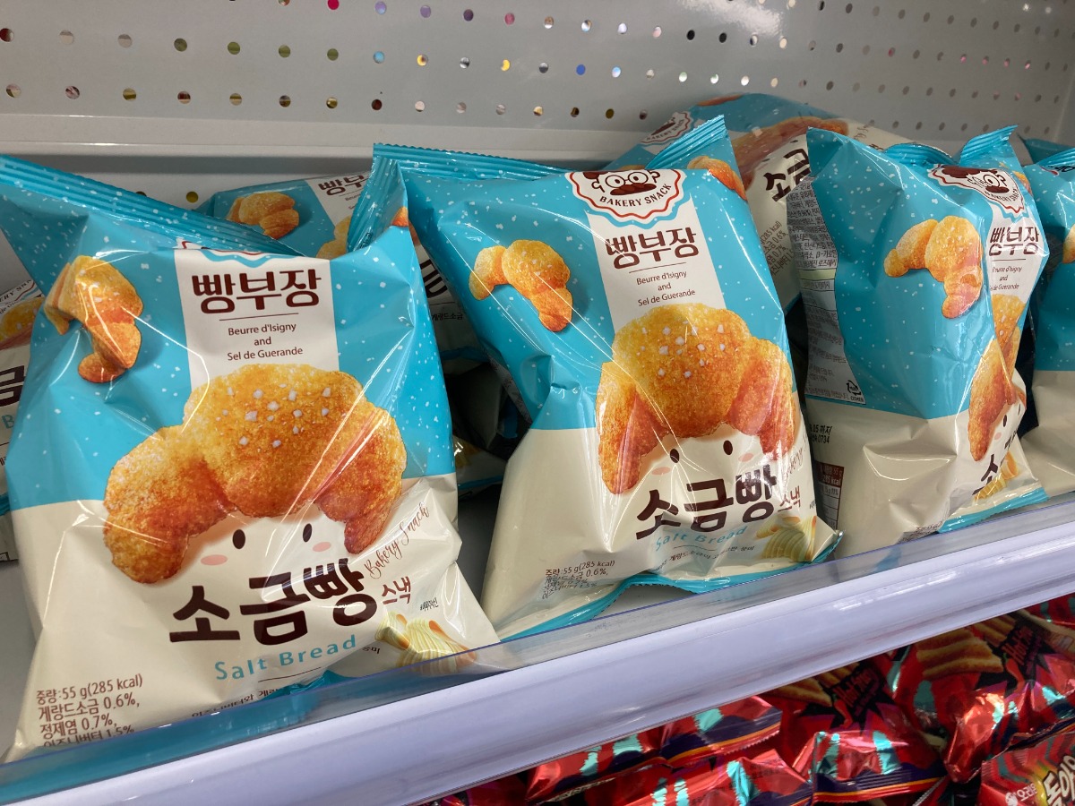 塩パンの味と形をスナック菓子で再現した、韓国でも人気のお菓子。