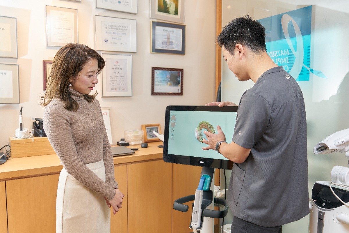【中平】レントゲンに加え、口腔内スキャナーとCTのデータを重ね合わせて、コンピュータ上で設計をします。どんなふうに歯が動いていくかをシミュレーションし、アフターのイメージをお見せすることもできます。