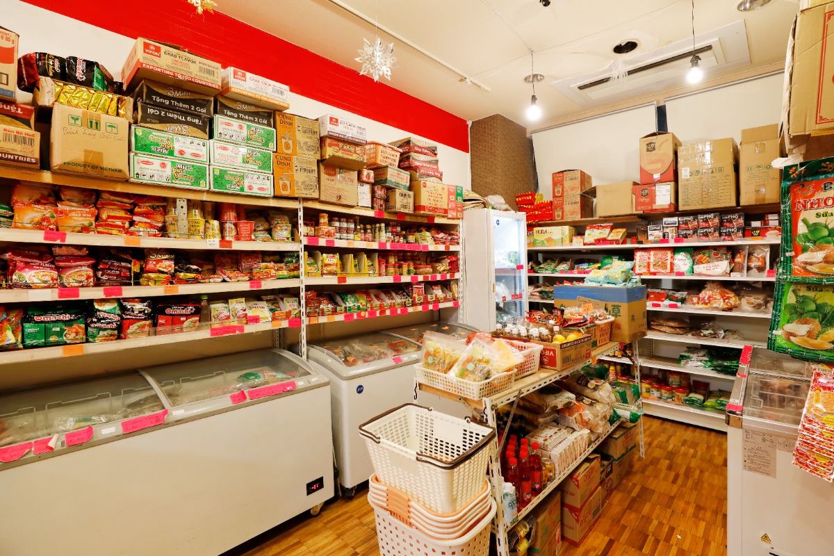 入口前には、ベトナム産の調味料や食材などを販売しているコーナーがあります。