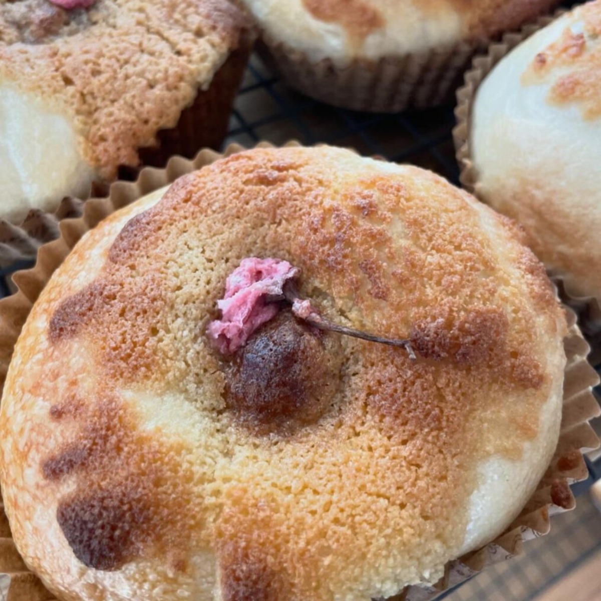 桜の葉とホワイトチョコをたっぷりと混ぜ込んだ優しい香りと味のチーズケーキに仕上げたベーグル。